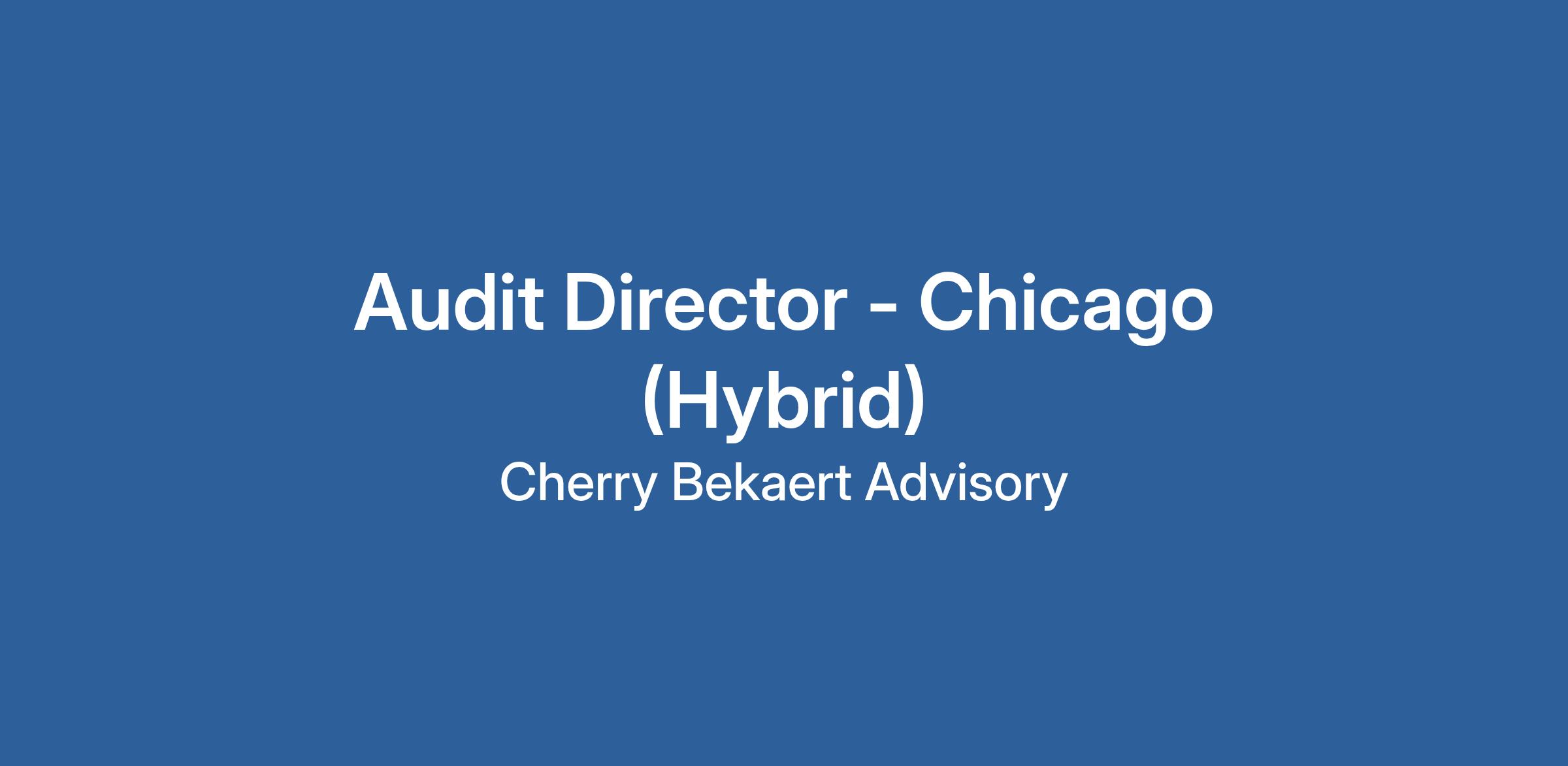 Ranked among the largest accounting and consulting firms in the country, Cherry Bekaert LLP delivers innovative and sophisticated assurance, advisory, and tax services to our clients. Our firm is thriving and we seek a highly motivated Audit Director for our Chicago practice.