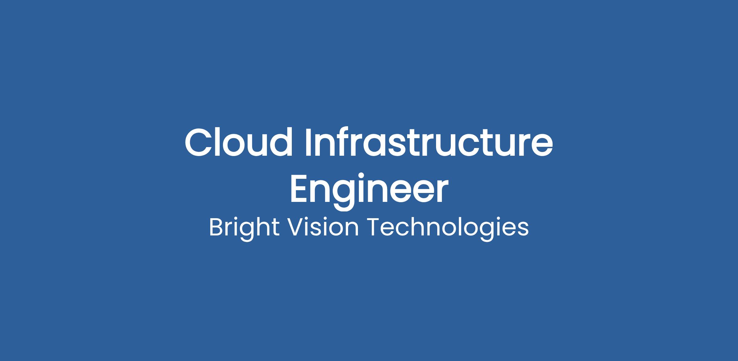 Cloud Infrastructure EngineerBright Vision Technologies is a forward-thinking software development company dedicated to building innovative solutions that help businesses automate and optimize their operations.