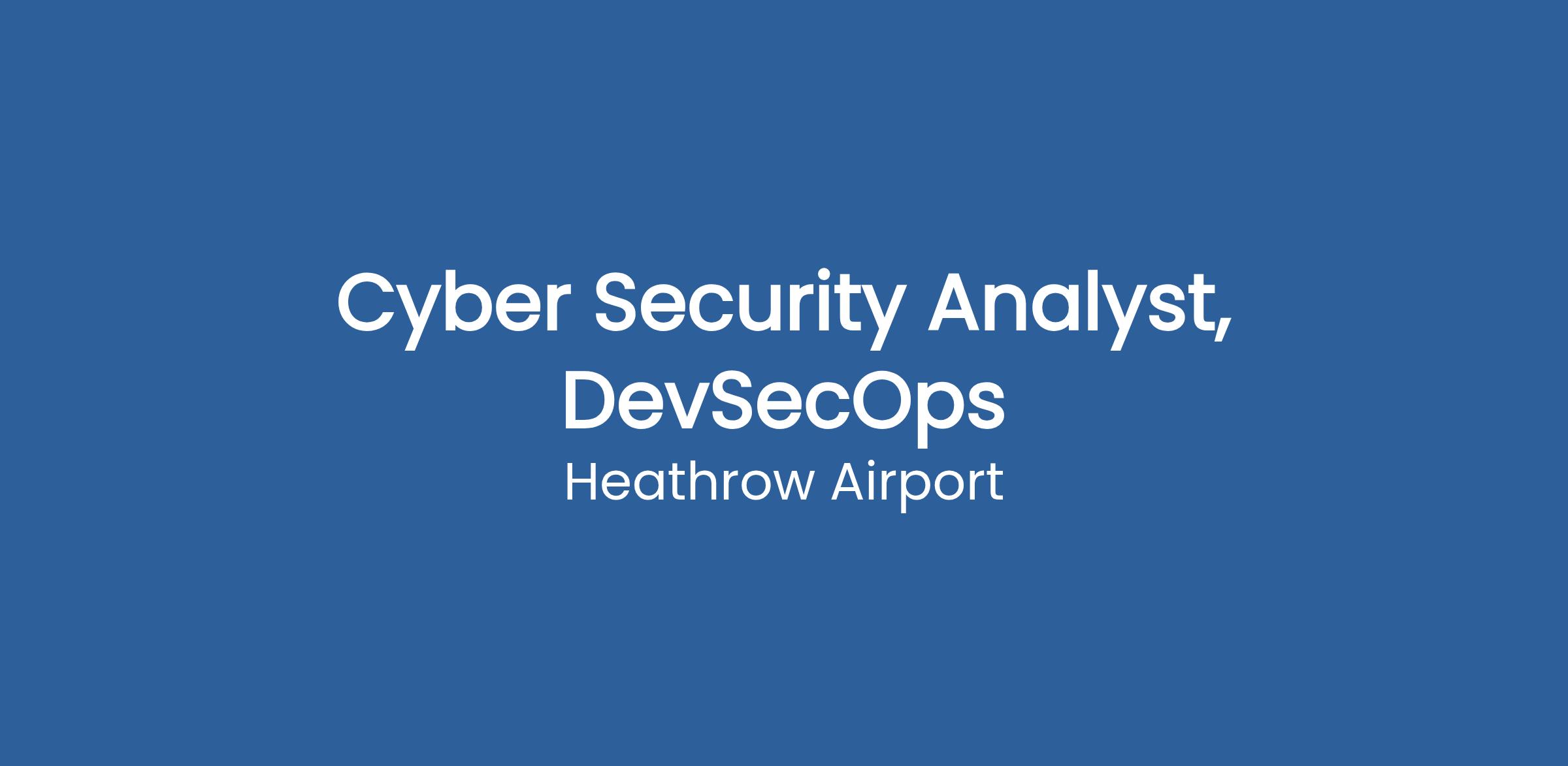 DescriptionThe Cyber Security Analyst – Secure Development is responsible for embedding secure-by-design and security-by-default principles across Heathrow’s entire software development lifecycle (SDLC). Working as part of the Cyber Security Team and reporting to the Lead Architect, Cyber Applications & AI, the role provides expert security advisory, assessment and automation capabilities to ensure security is built into code and development processes from inception rather than treated as a follow-on activity.