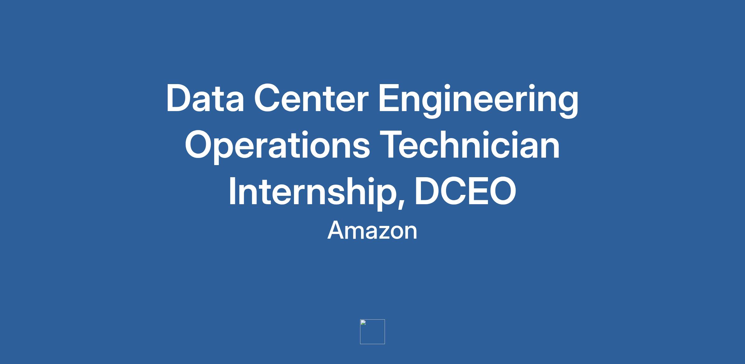 Amazon Web Services (AWS) is seeking Data Center Engineering Operations (DCEO) intern technicians between January 2026- July 2026. Interns will participate in our 6-month work and training internship at our Northern Virginia facilities.