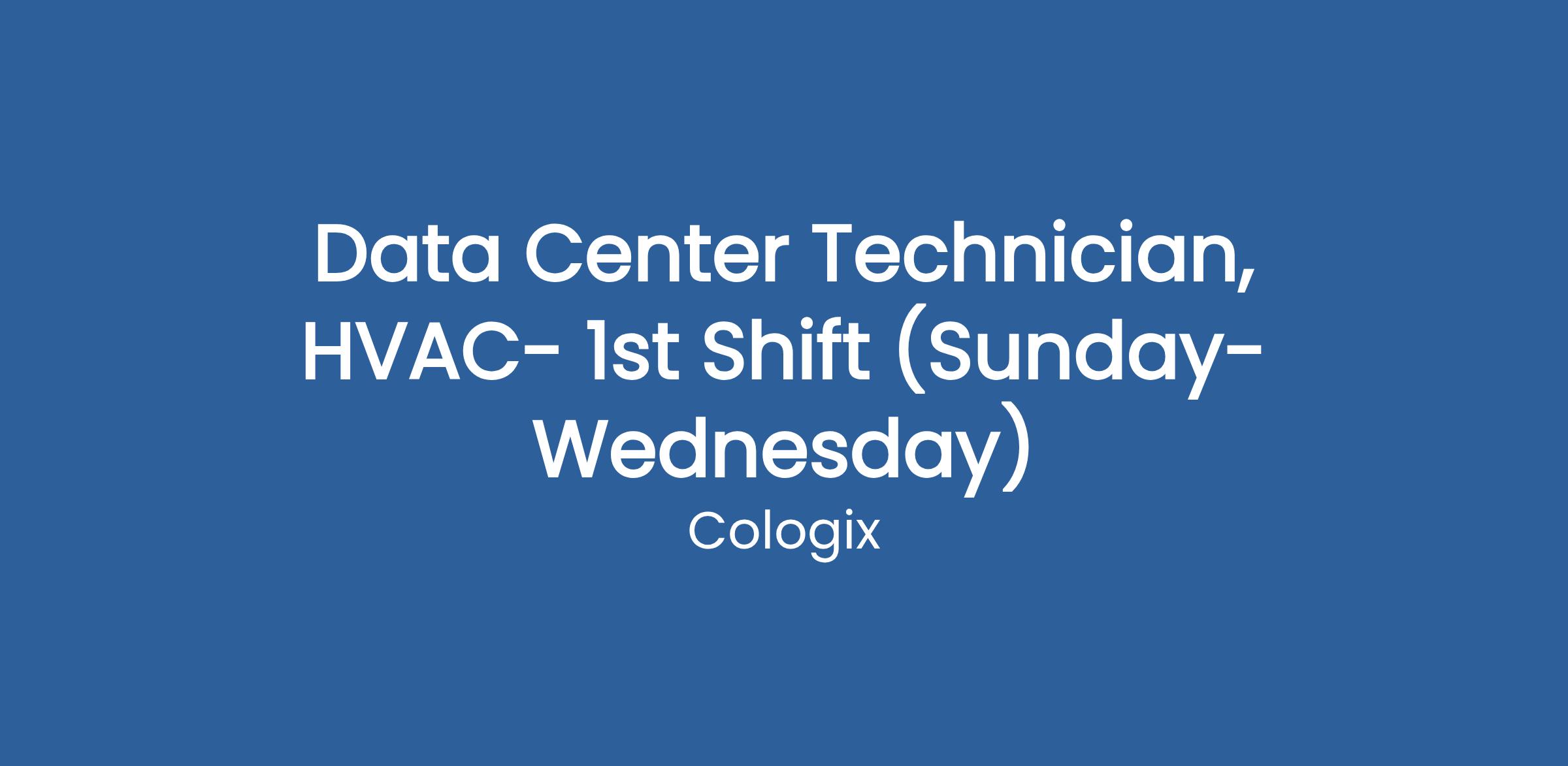 The Data Center Technician, HVAC will play a critical role in performing skilled mechanical maintenance duties in the inspection, repair, installation and alteration of Data Center heating, ventilation, air conditioning and refrigeration systems and related equipment. They will perform preventive maintenance and routine servicing of equipment in all of the Northern Ashburn facilities. We are looking for an early career specialist who is looking to gain excellent experience in the Data Center Industry with an opportunity to grow with the company as we continue to expand.