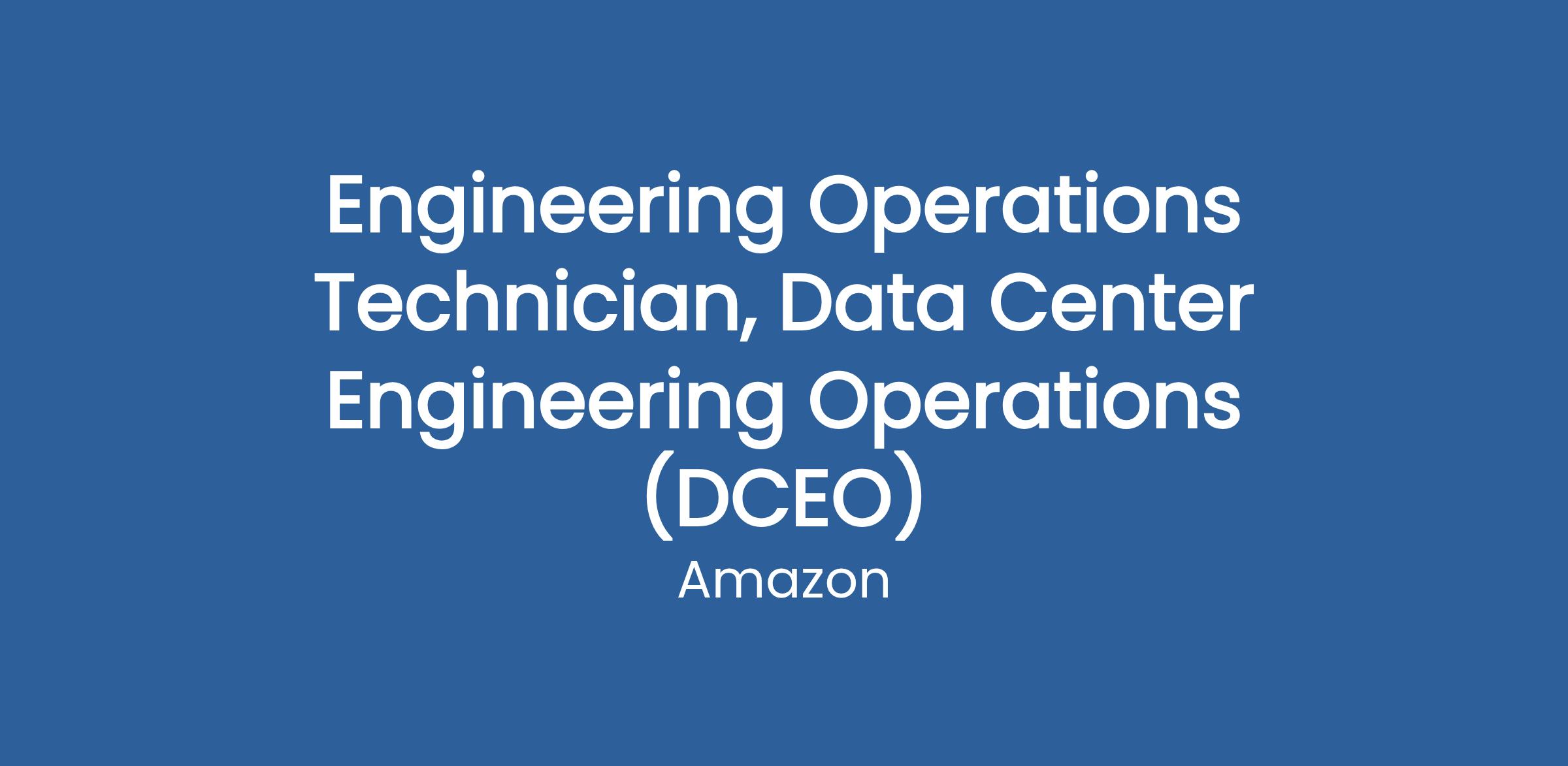 Engineering Technicians are Amazon’s front line when it comes to hands-on electrical and mechanical equipment troubleshooting. They will maintain, operate, and troubleshoot, Data Center Operation’s Mission Critical Facilities, which includes stand-by diesel generators and related fuel systems, as well as three phase electrical systems such as: switch gear, UPSs, PDUs, wet cell batteries and associated systems, CRAC, centrifugal chillers, cooling towers/water chemical system, air handlers and associated systems, pumps, & motors.