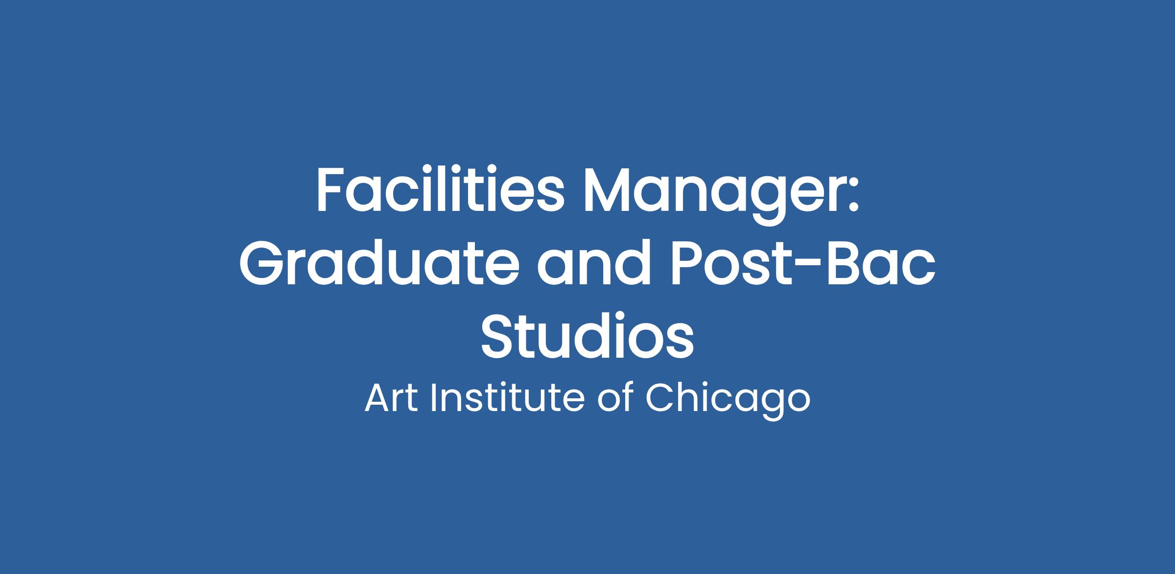 Provide administrative and facility management services to the Graduate and Post-Bac studios. Oversee facility operations on a day-to-day basis. Manage and maintain a clean and safe environment, and respond to the needs of students, faculty, and staff..