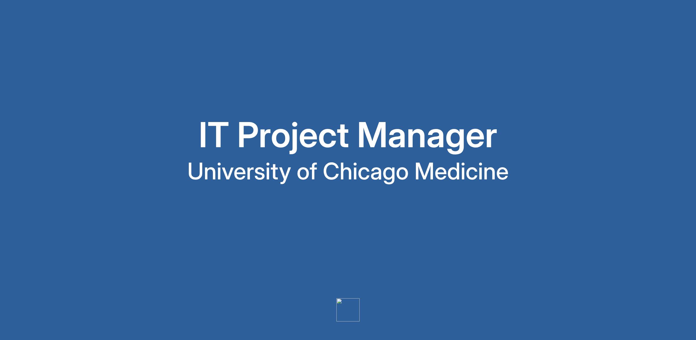 Join one of the nation’s most comprehensive academic medical centers, UChicago Medicine, as an IT Project Manager. This position will be primarily a work-from-home opportunity with the requirement to come onsite to our site locations around Chicagoland as needed. You will need to be based in the greater Chicagoland area.