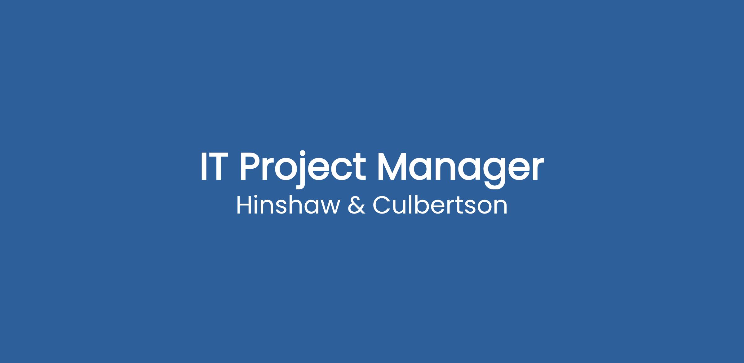 Hinshaw & Culbertson LLP is seeking a dynamic, results-driven IT Project Manager to join our PMO and technology organization. This role is ideal for a seasoned project manager who thrives in a fastβpaced, professional services environment and excels at translating business needs into effective technology solutions.