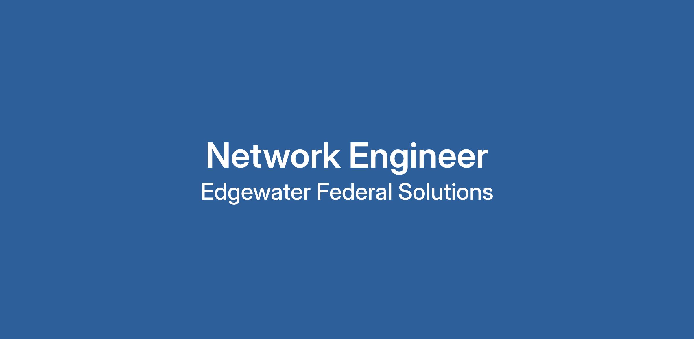 Edgewater Federal Solutions is an Equal Opportunity Employer. It has been and continues to be our policy to provide equal employment to all employees and applicants for employment without regard to race, color, religion, gender, national origin, age, disability, marital status, veteran status and/or other status protected by applicable law. #LI-HH1