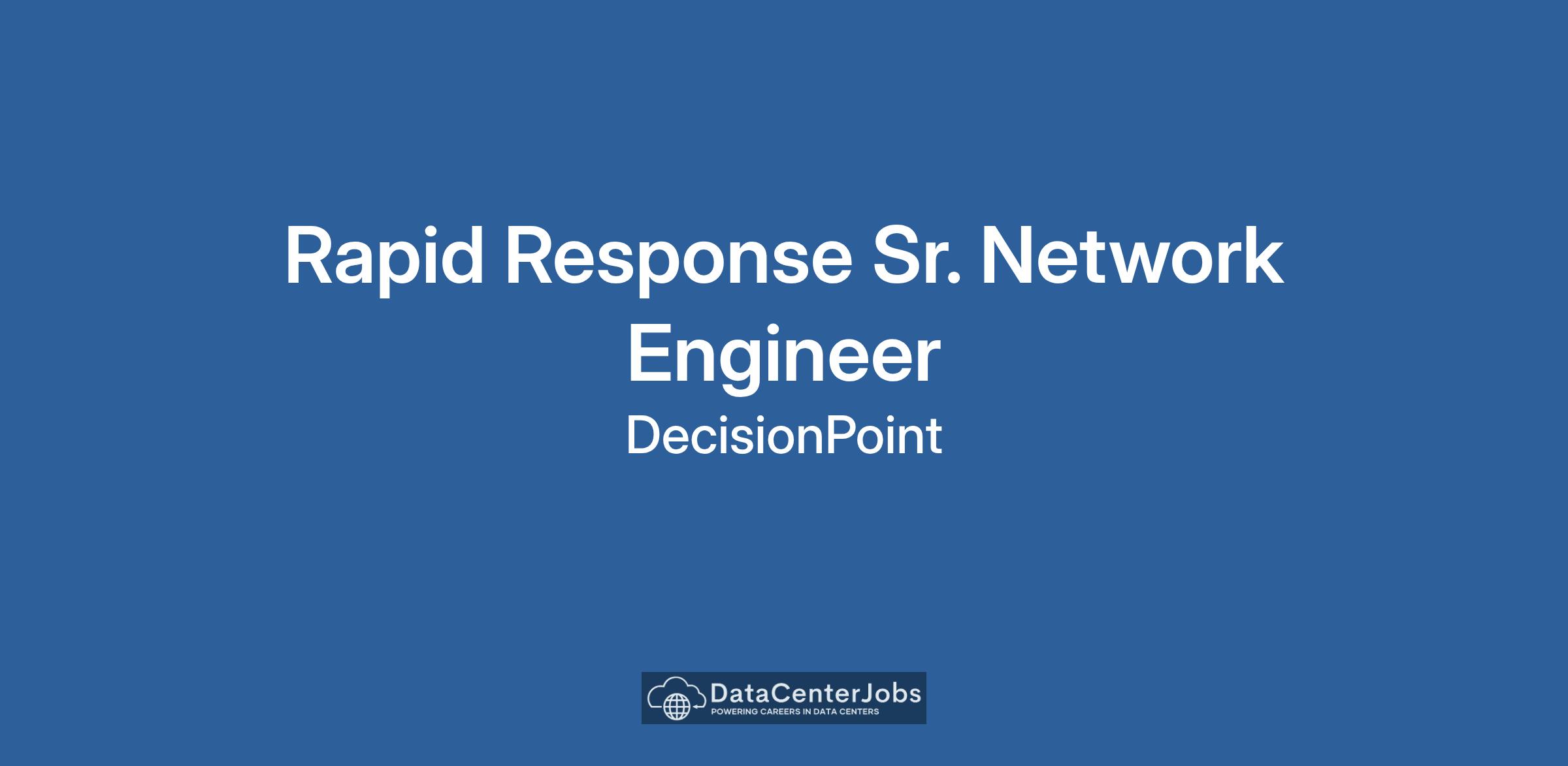 DecisionPoint Corporation is seeking a Rapid Response Sr. Network Engineer to join our team on the upcoming Enterprise DISA JSP ETM Services 2.0 program.