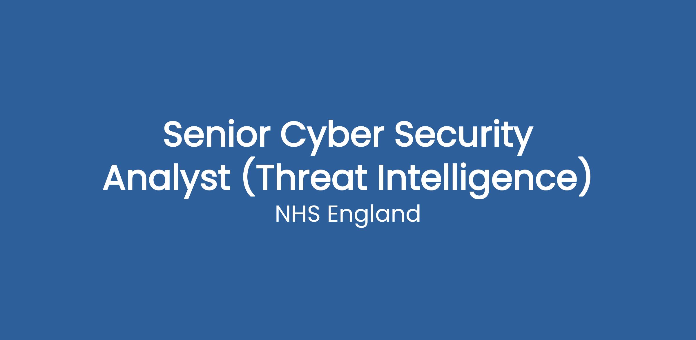The Senior Security Analyst is responsible for collecting, analysing and disseminating cyber threat intelligence to identify threats to the systems, infrastructures, and resources critical to NHS England and across Health & Care.