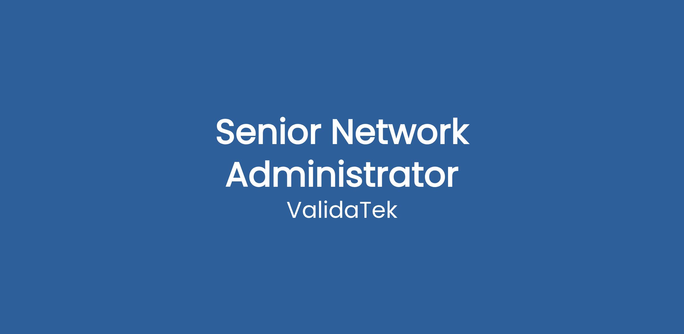 ValidaTek is seeking a skilled and experienced Senior Network Administrator to join our Cybersecurity Systems Support (CSS) team supporting the Defense Information Systems Agency (DISA). This position plays a key role in the configuration, maintenance, and security of network infrastructure in a mission-critical DoD environment. The role is 100% on-site in Columbus Ohio and requires strong technical expertise, problem-solving skills, and the ability to work in a dynamic, team-oriented environment.