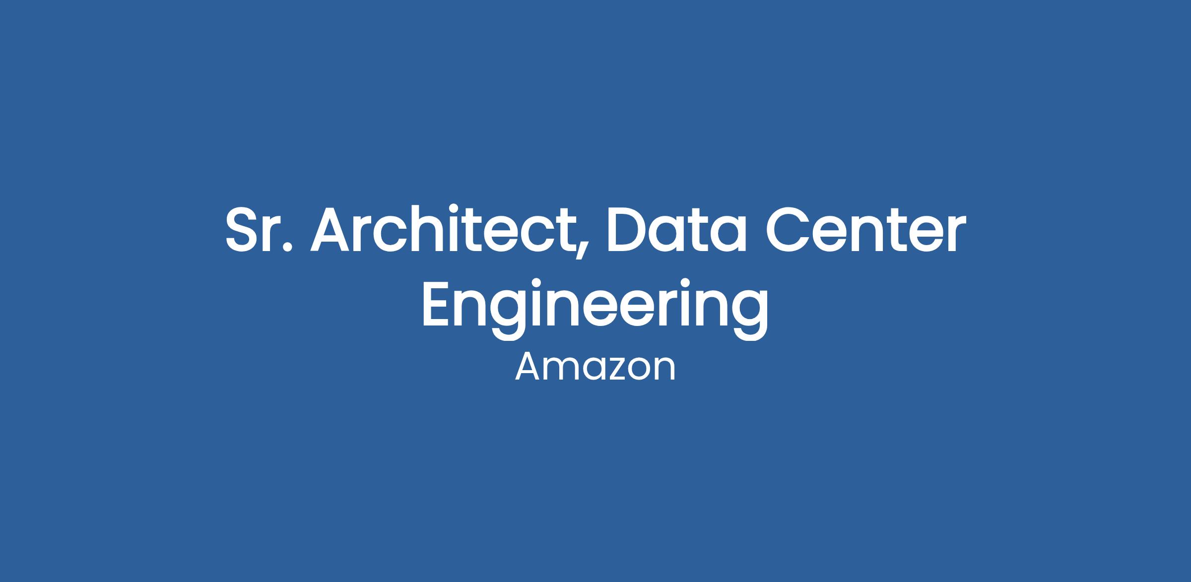 Amazon Web Services is seeking Senior Architect to become part of a global engineering team, responsible for the implementation and technical evaluation of our designs and the continuous innovation of our rapidly expanding data center footprint.