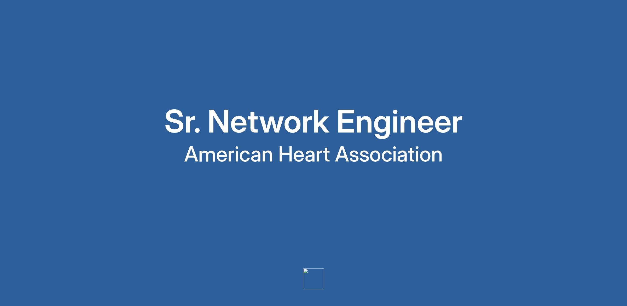 The American Heart Association has an excellent opportunity for a Sr. Network Engineer at our office located in Dallas, TX.
